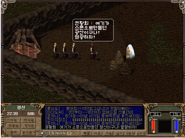 위 사진은 마지막왕국 초보자들이 반드시 한 번쯤 거쳐 가던 @이동 터입니다.