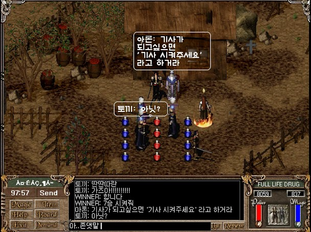 예전에는 이 터 앞에 많은 초보 유저들이 모여 있었고, 가끔 일부 악성(?) 유저들이 울빅, 글빅, 어쓰 같은 전체 마법을 사용해
